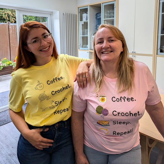 Coffee. Crochet. Sleep. Repeat! Colourful Relaxed Fit T-shirt by Brunaticality