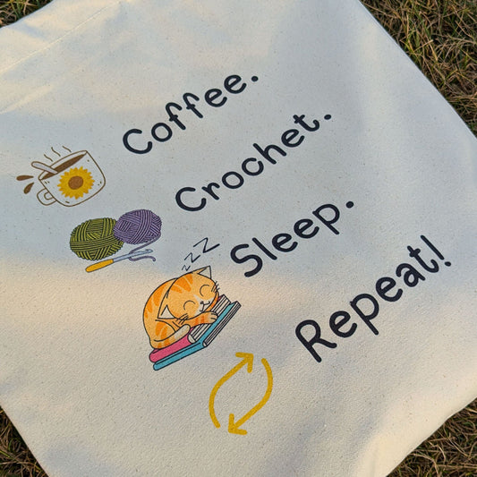 Coffee. Crochet. Sleep. Repeat! Tote Bag by Brunaticality