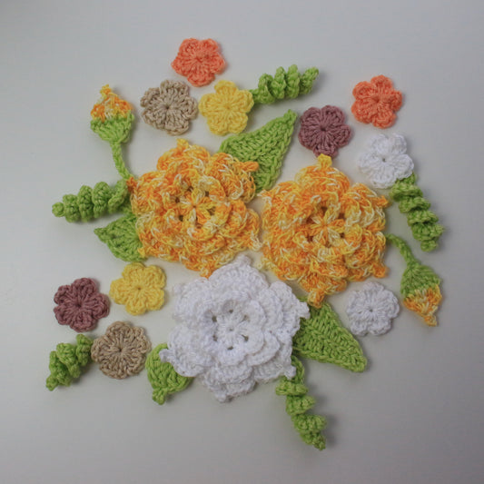Flowers and Leaves Crochet Pattern - 3 flowers & 3 leaves, crochet flowers and leaves pattern, crochet flowers, crochet leaves