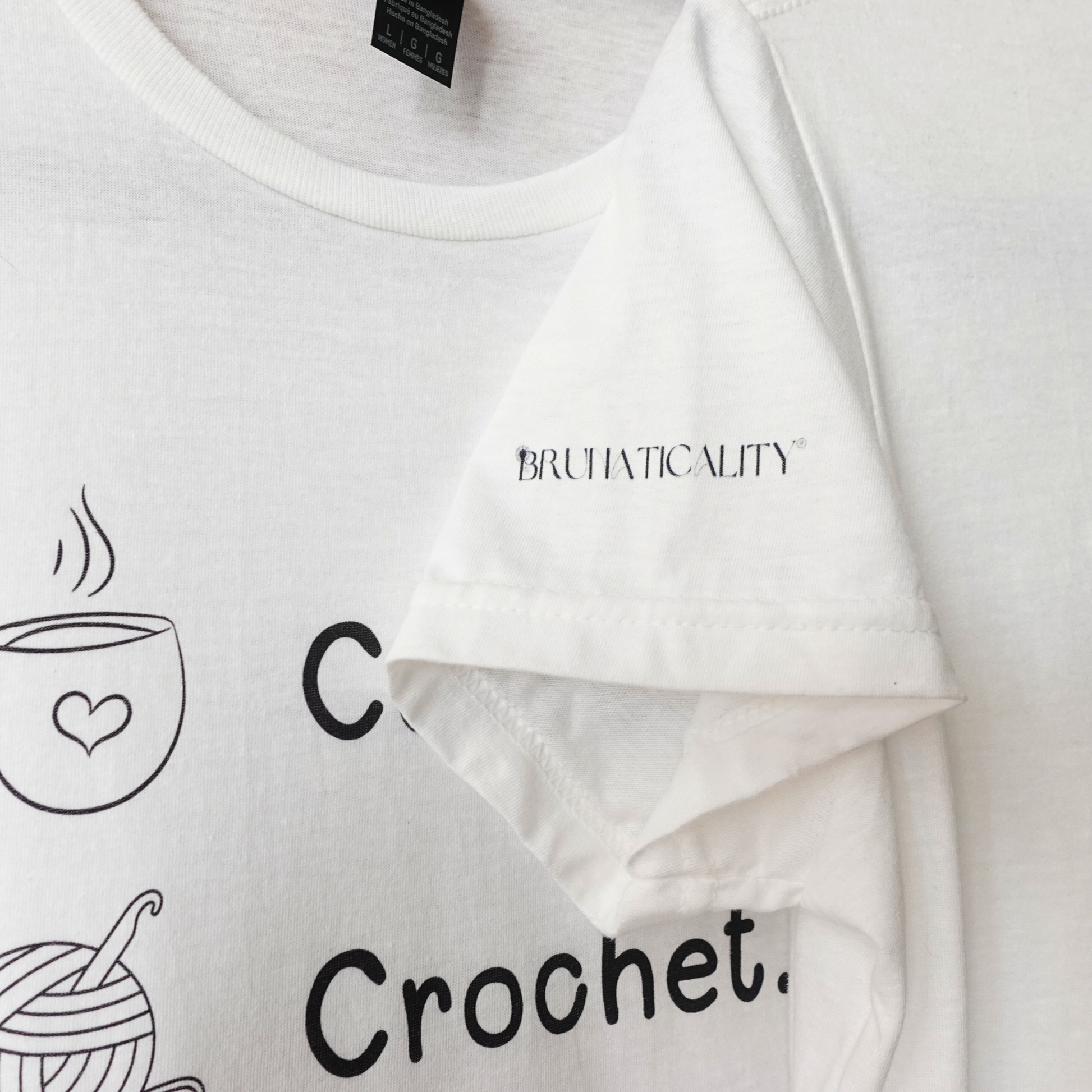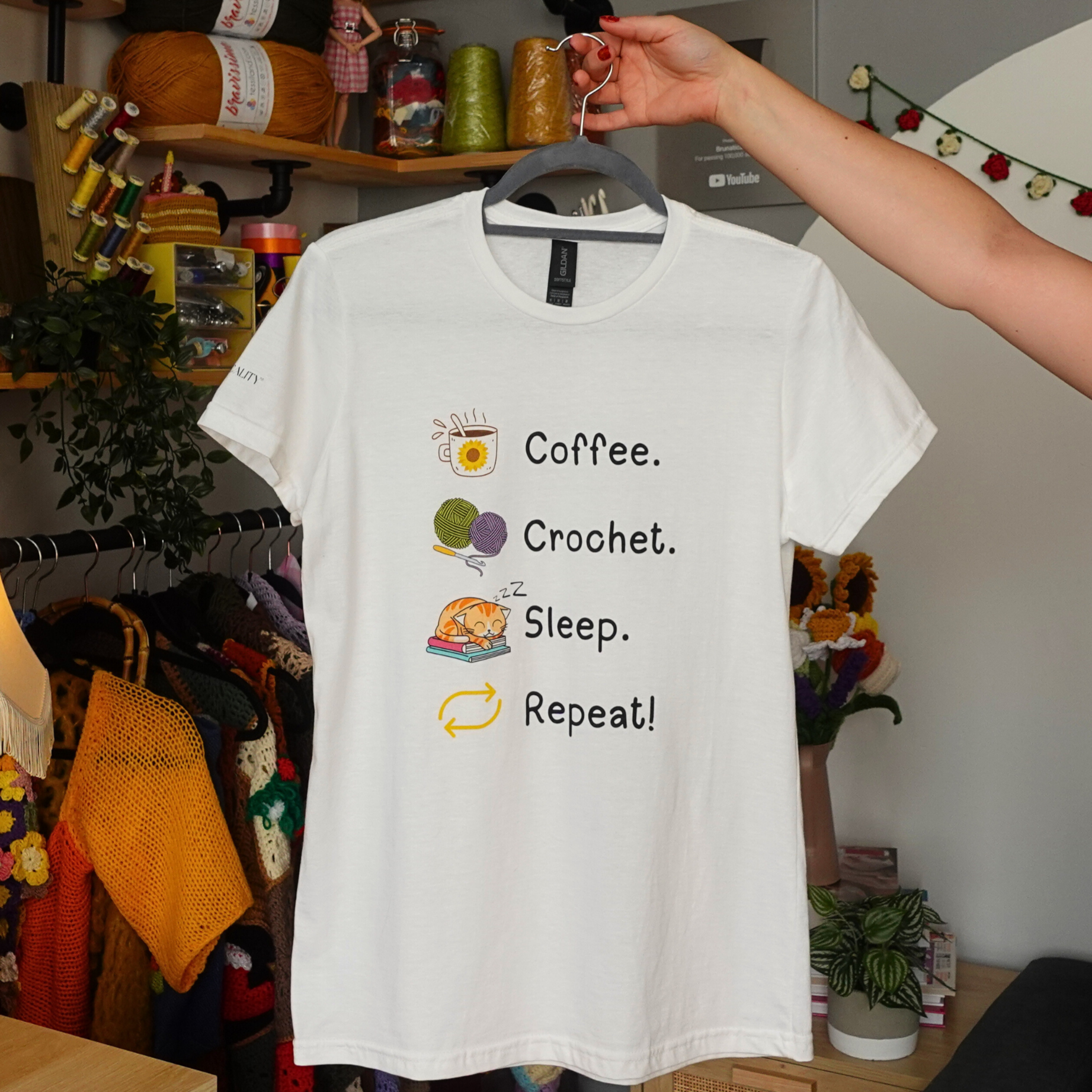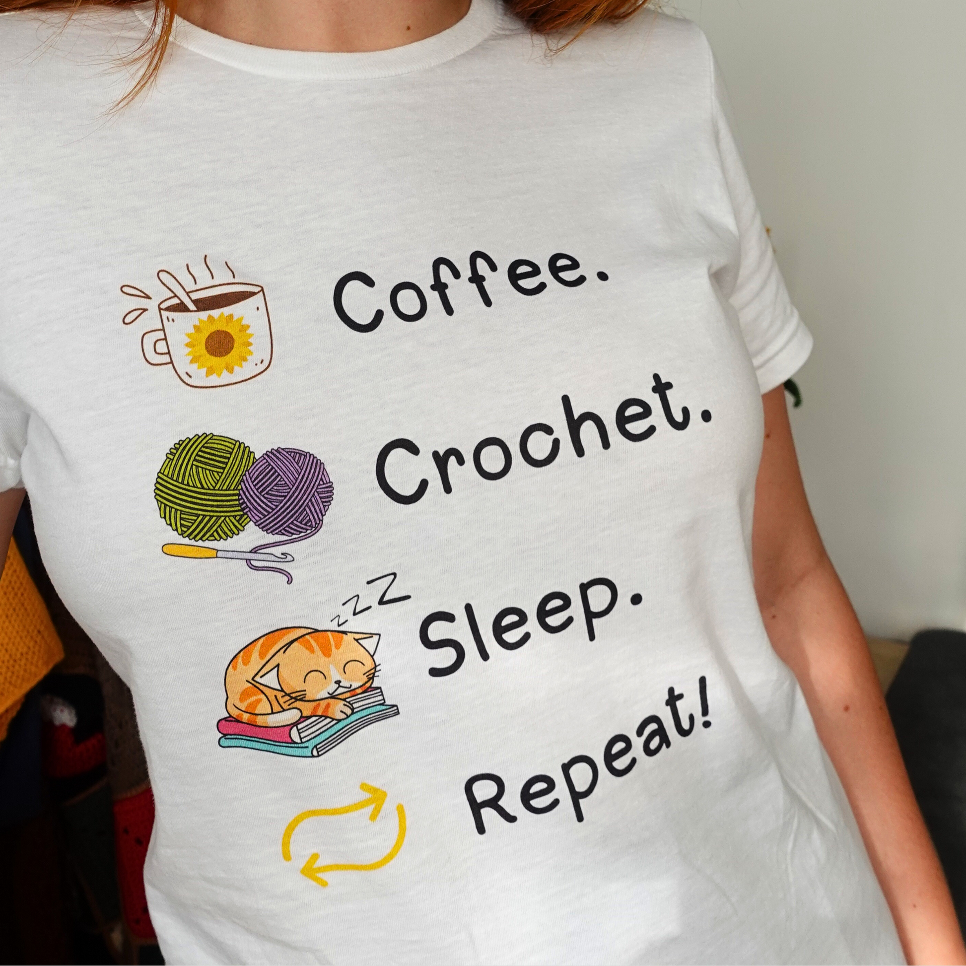Coffee. Crochet. Sleep. Repeat! Fitted T-shirt by Brunaticality