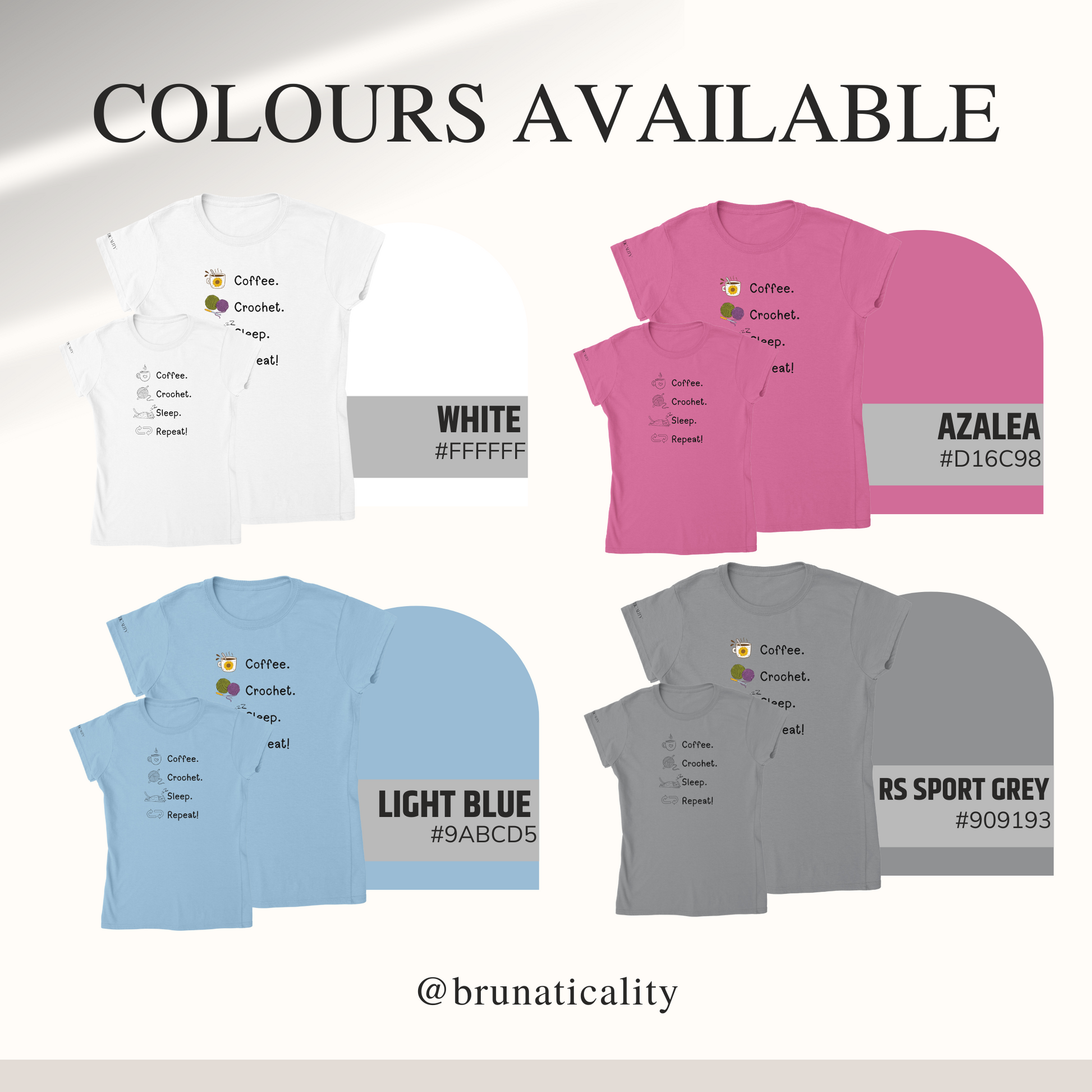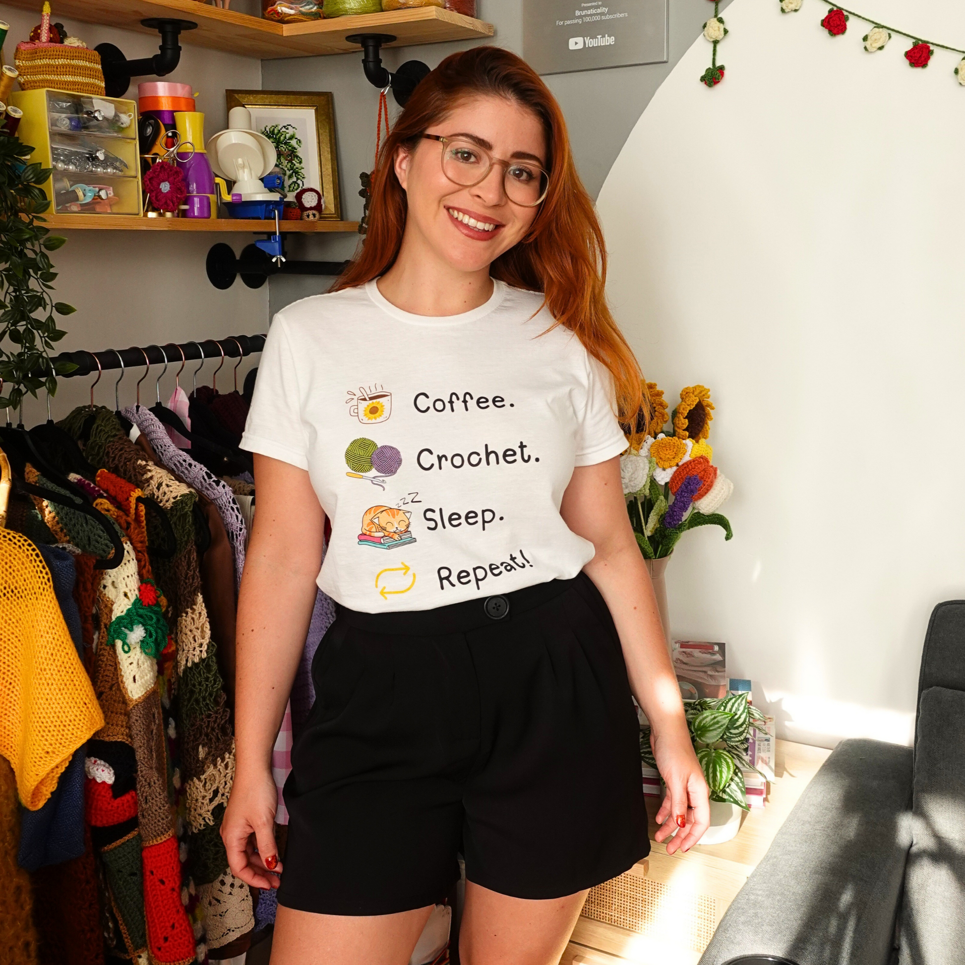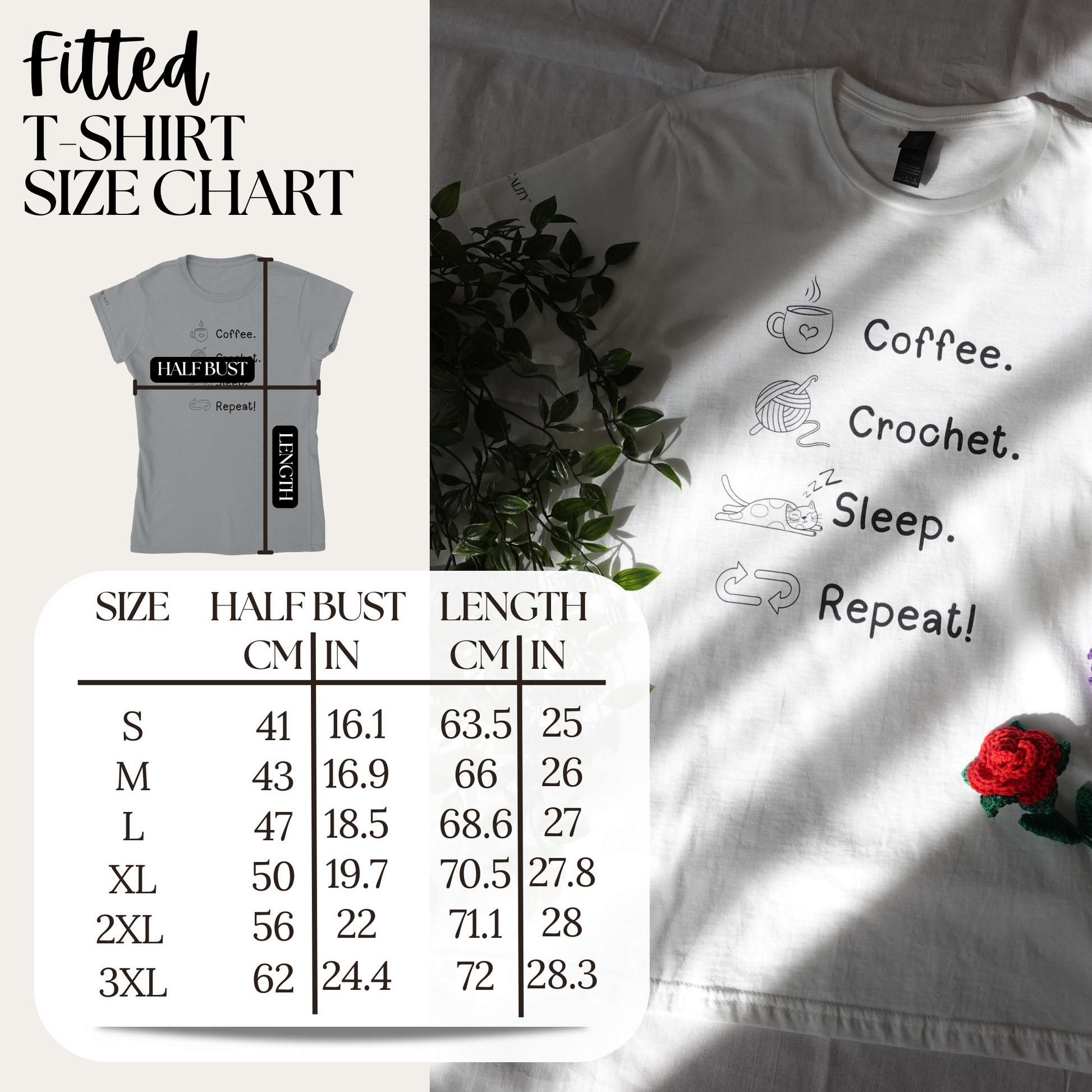 Coffee. Crochet. Sleep. Repeat! Fitted T-shirt by Brunaticality