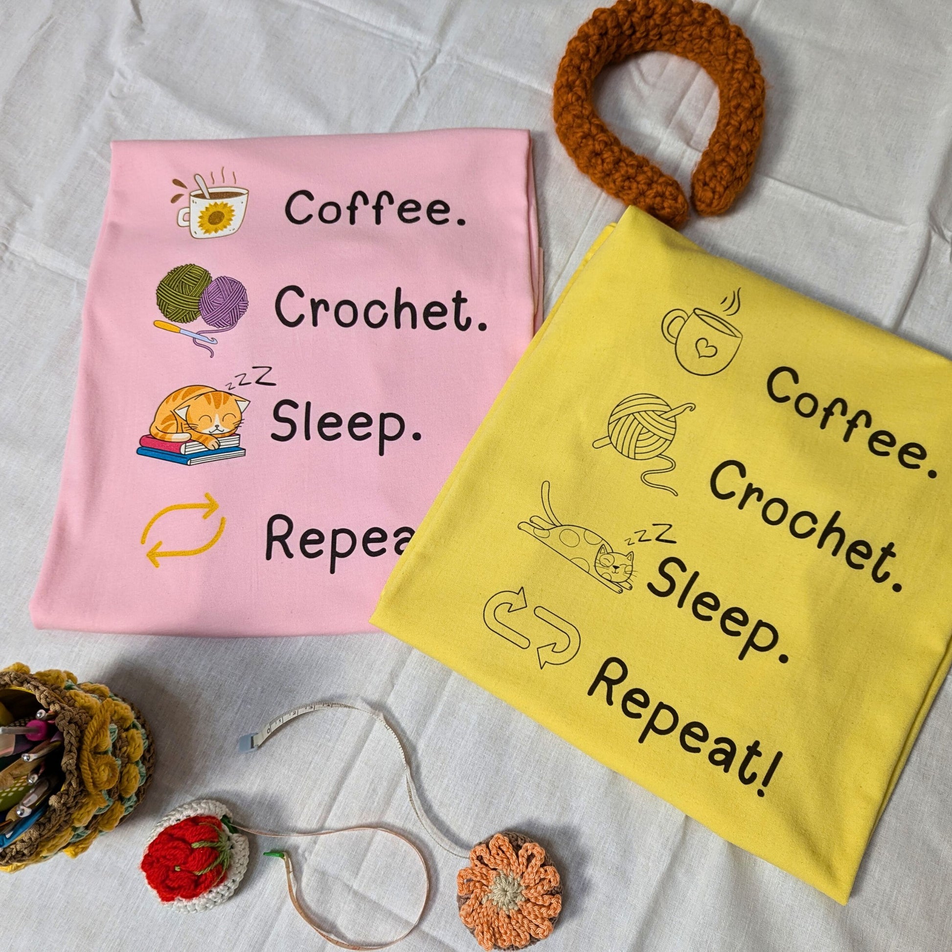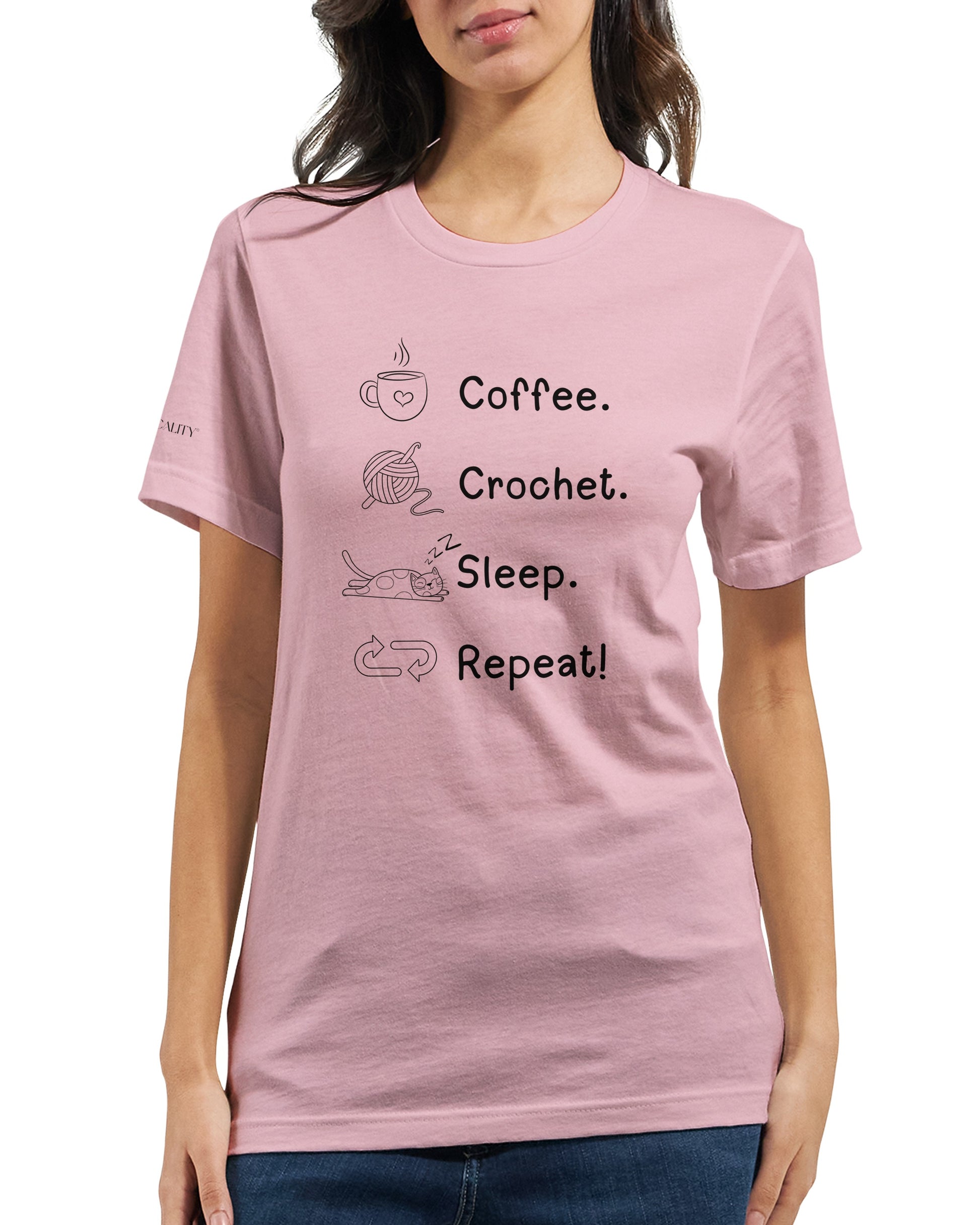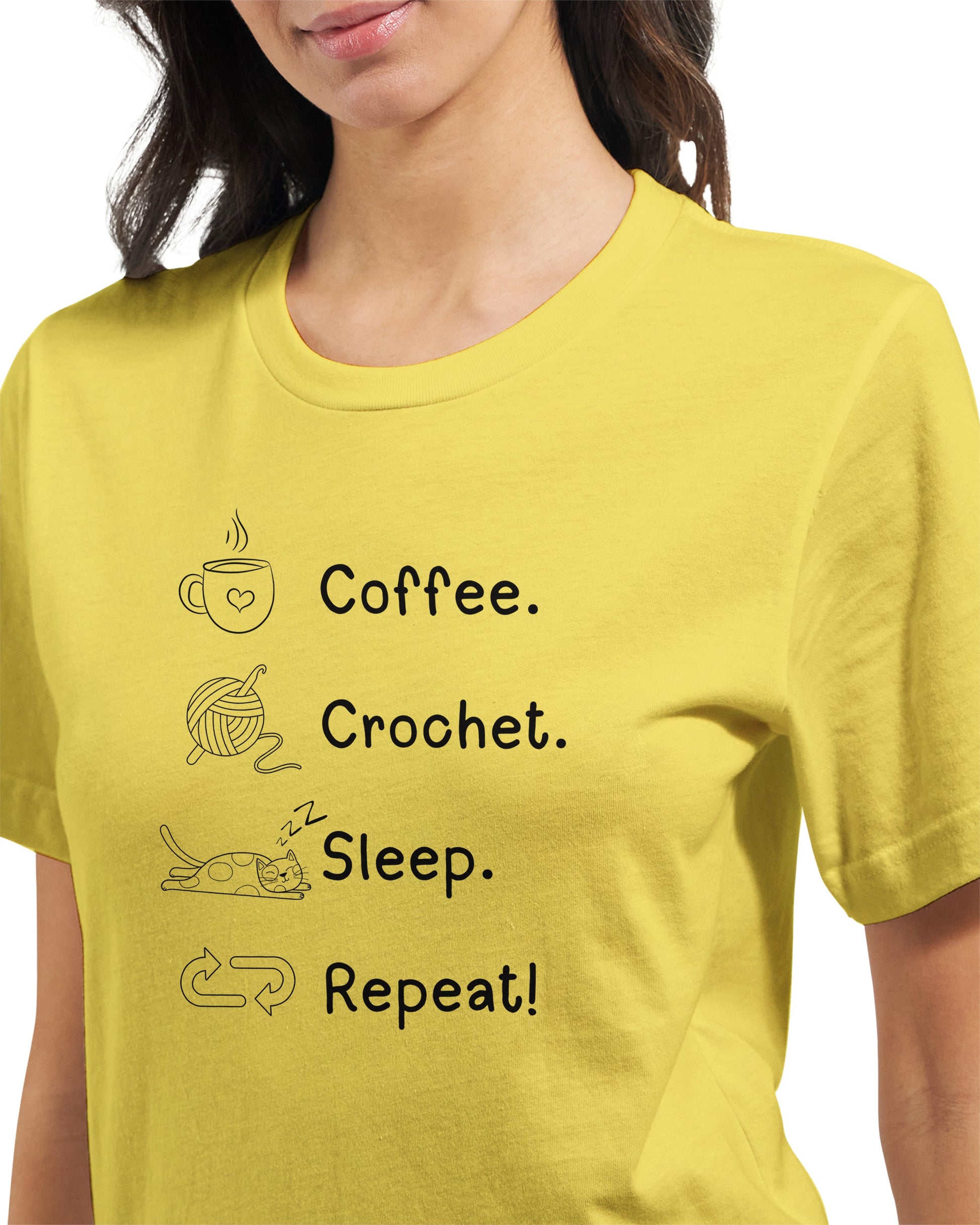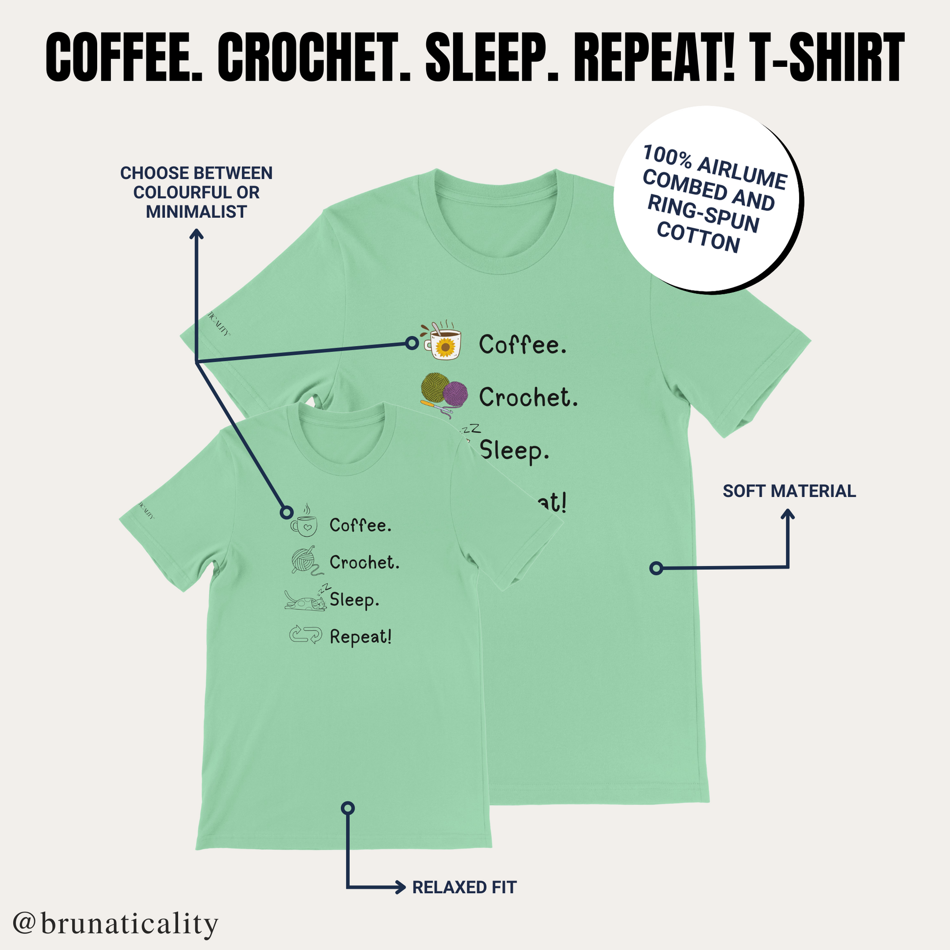 Coffee. Crochet. Sleep. Repeat! Colourful Relaxed Fit T-shirt by Brunaticality