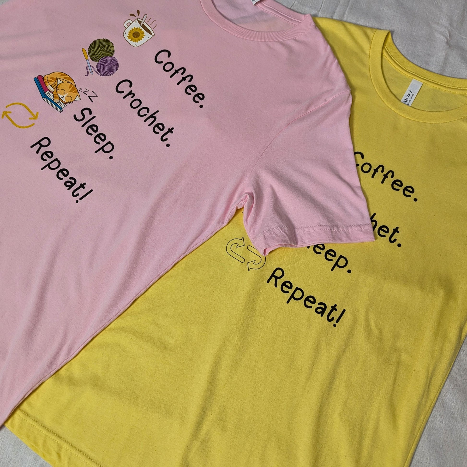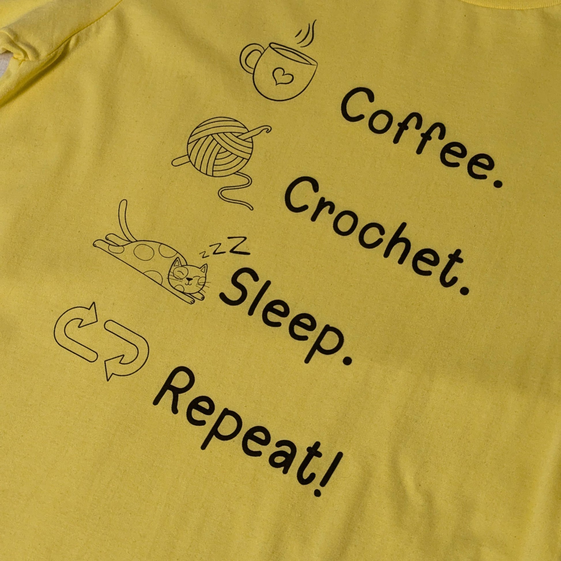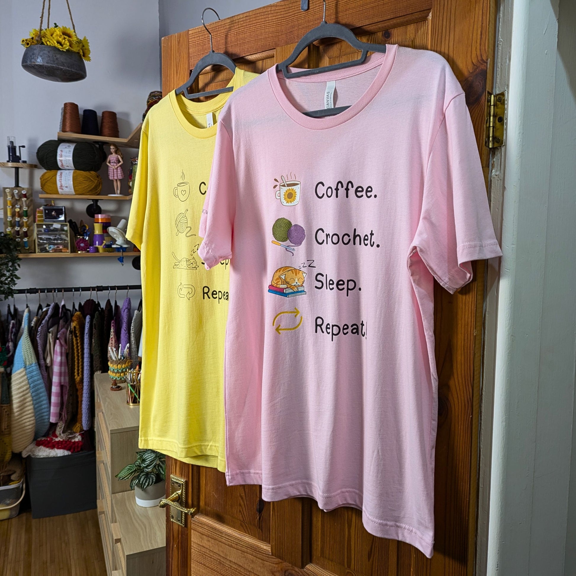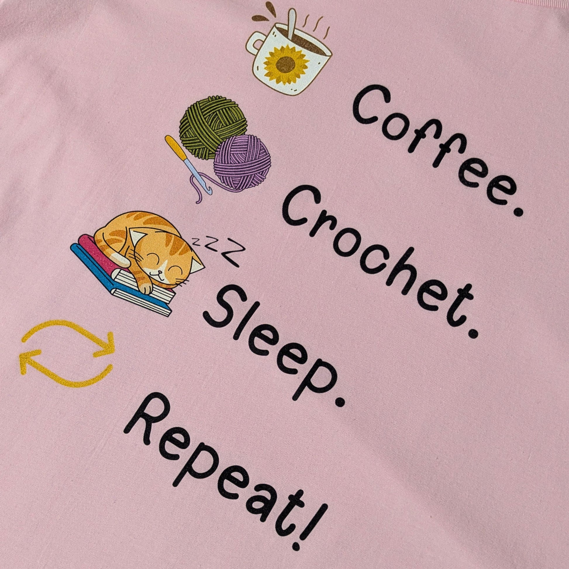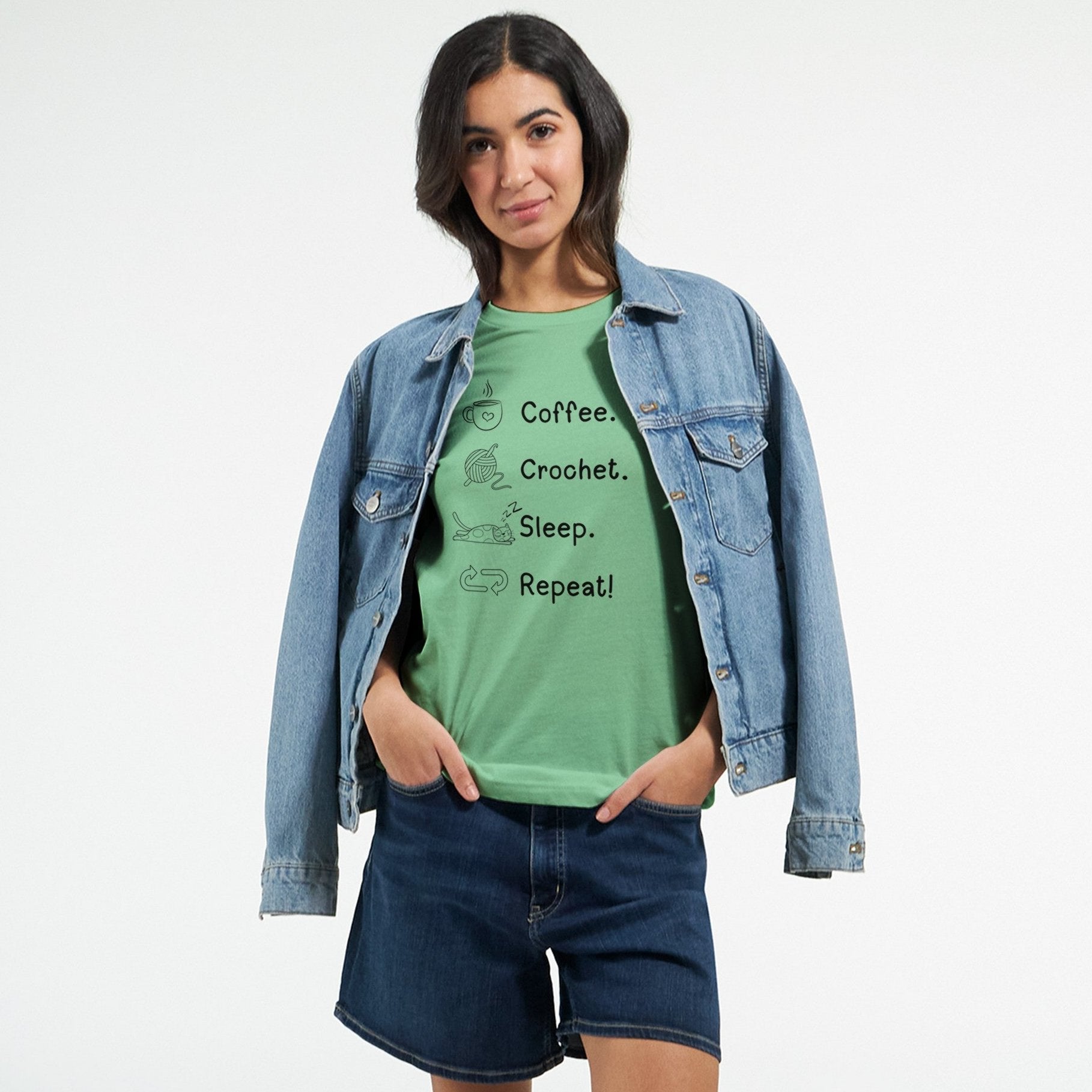 Coffee. Crochet. Sleep. Repeat! Colourful Relaxed Fit T-shirt by Brunaticality