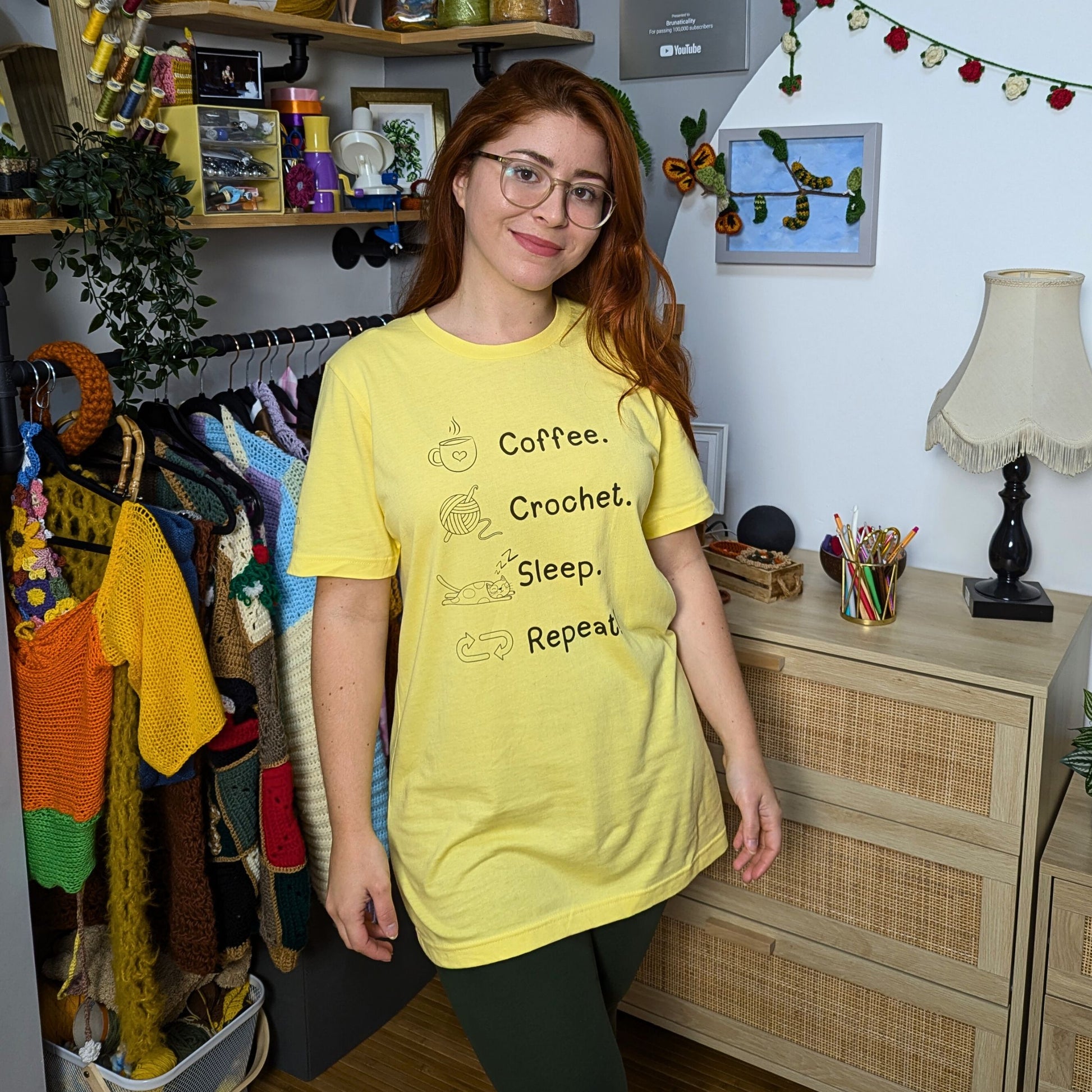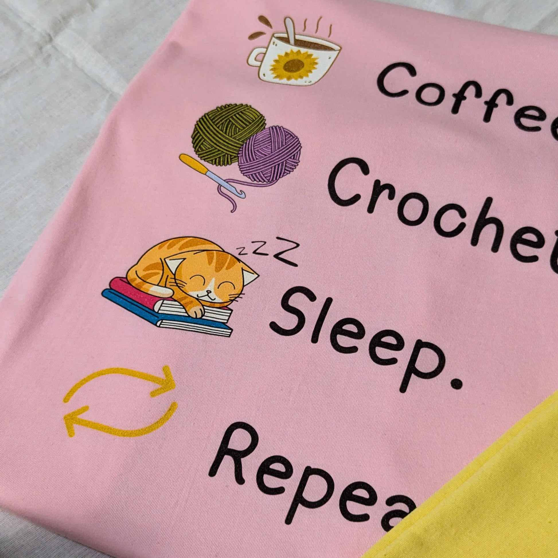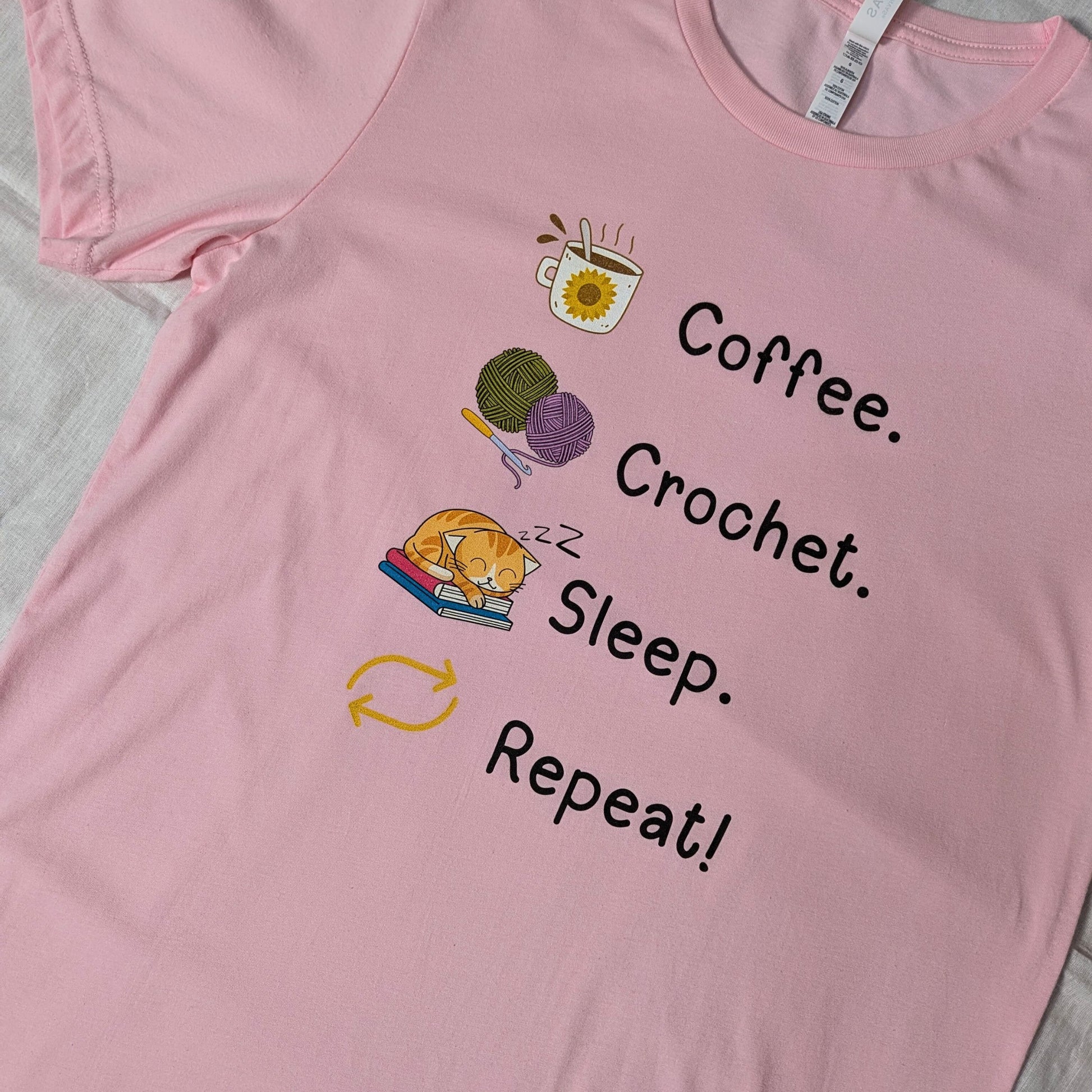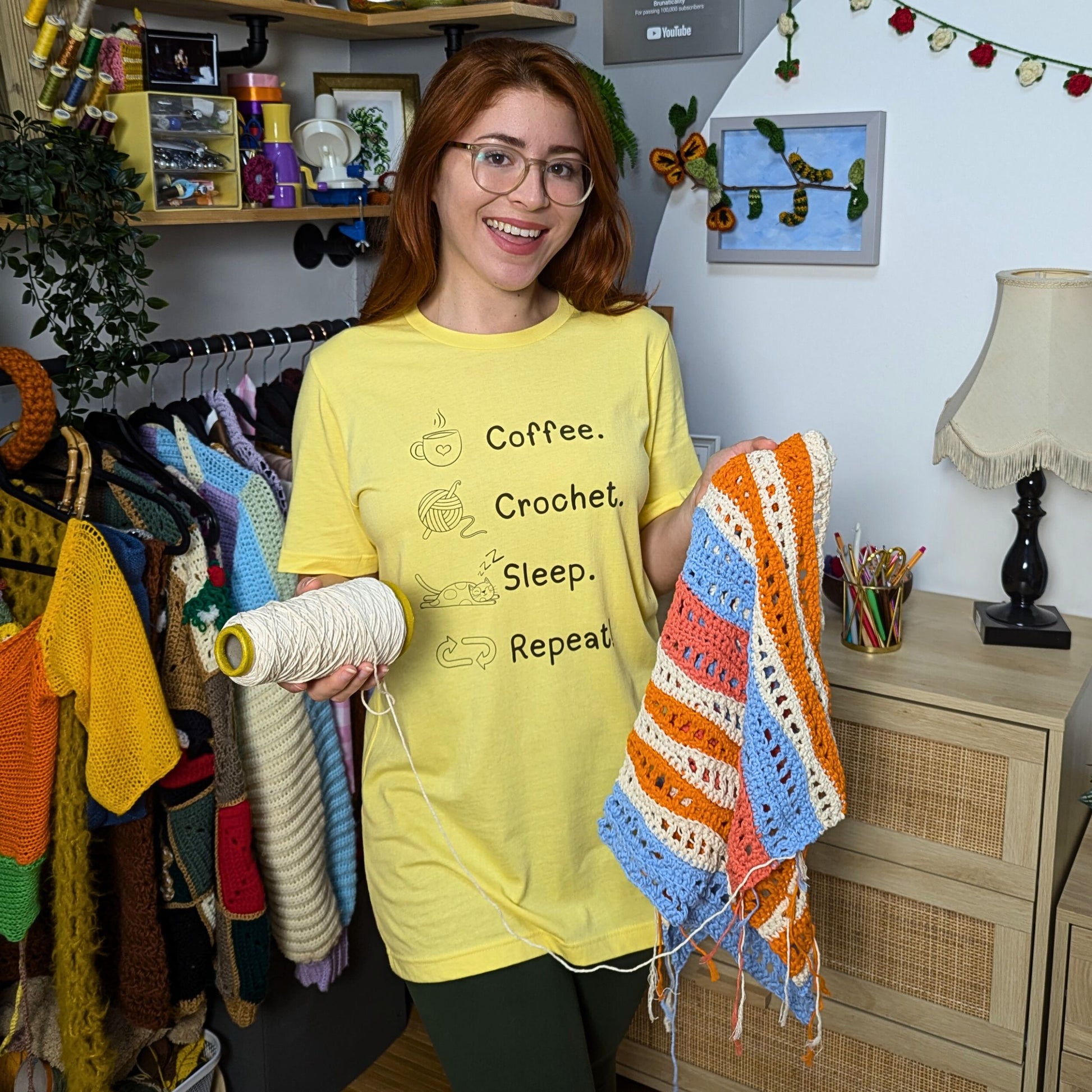 Coffee. Crochet. Sleep. Repeat! Colourful Relaxed Fit T-shirt by Brunaticality