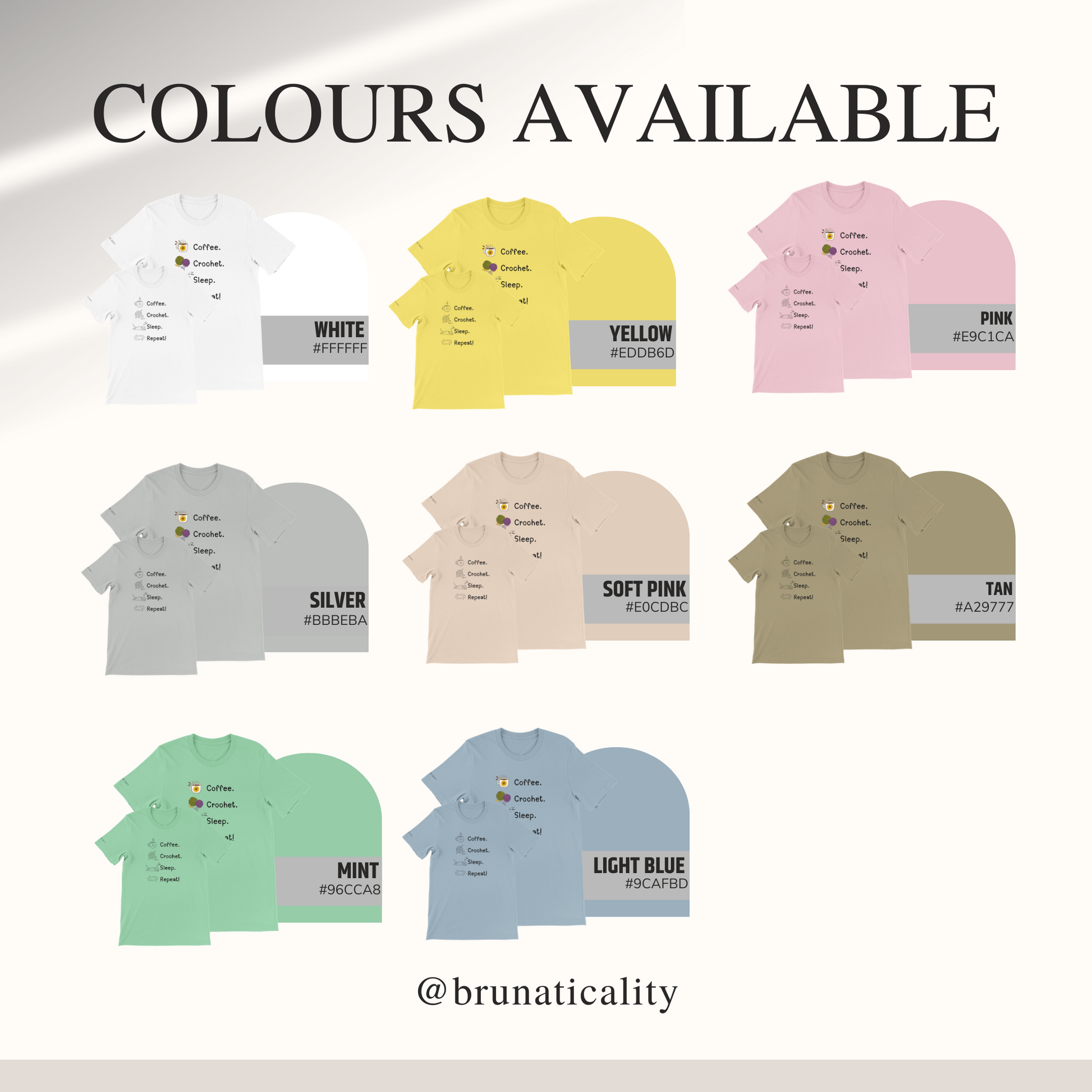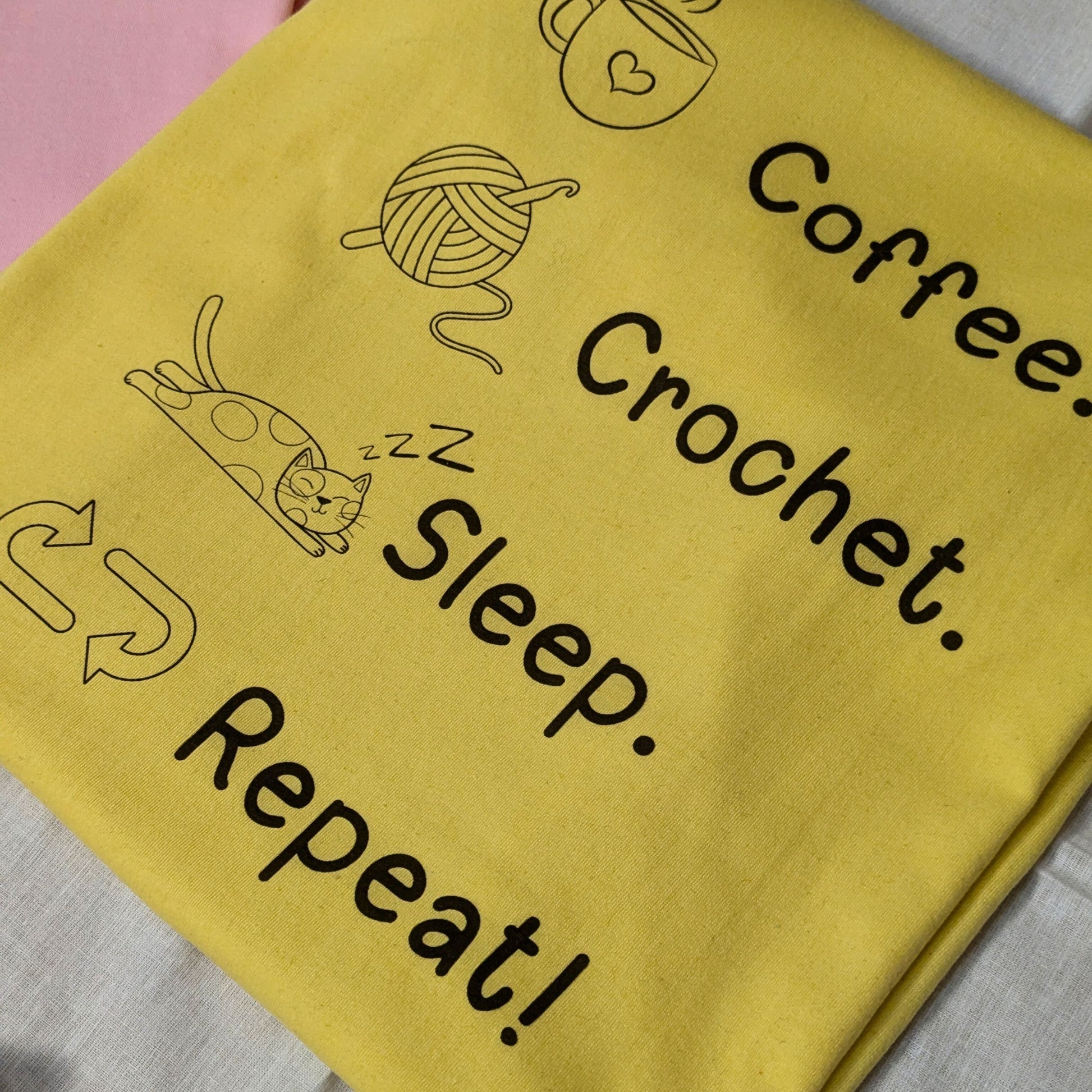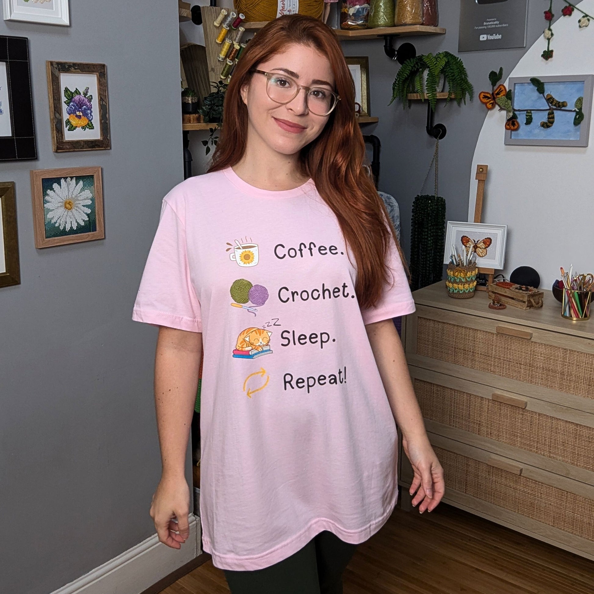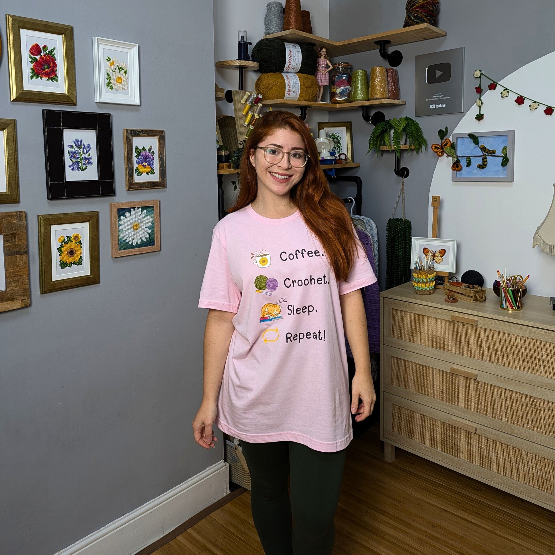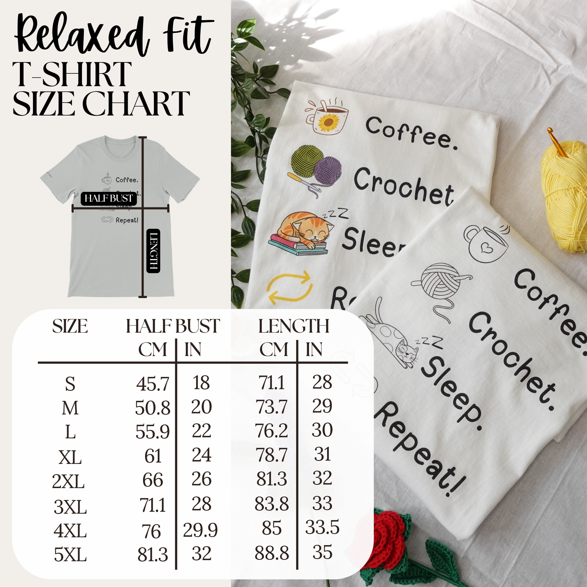 Coffee. Crochet. Sleep. Repeat! Colourful Relaxed Fit T-shirt by Brunaticality