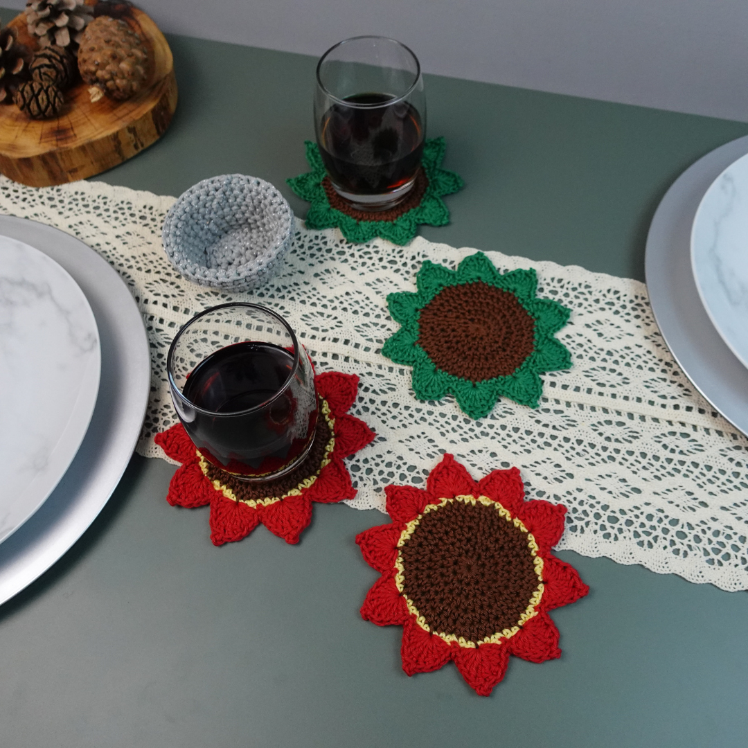 Crochet Poinsettia Flower Pot Coaster Set Written Pattern, Brunaticality