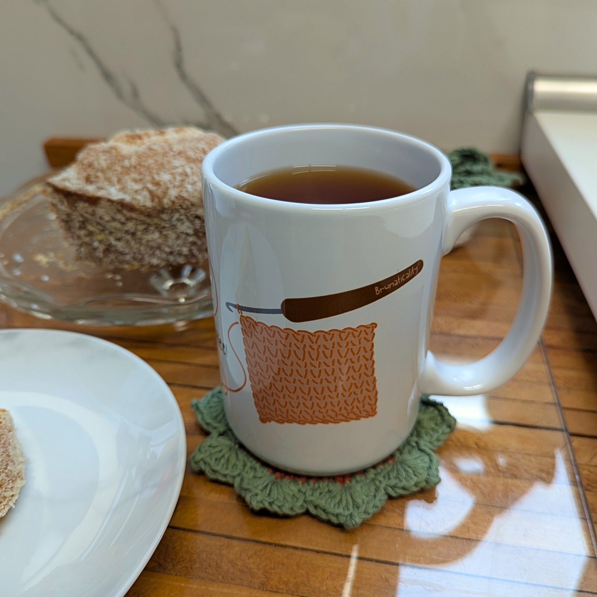 A mug that is perfect for crochet lovers! Whether it's your morning coffee, a cozy hot chocolate or any warm beverage, this glossy white mug will brighten your day. It's microwave and dishwasher safe, ensuring the print stays vivid and beautiful with every use.