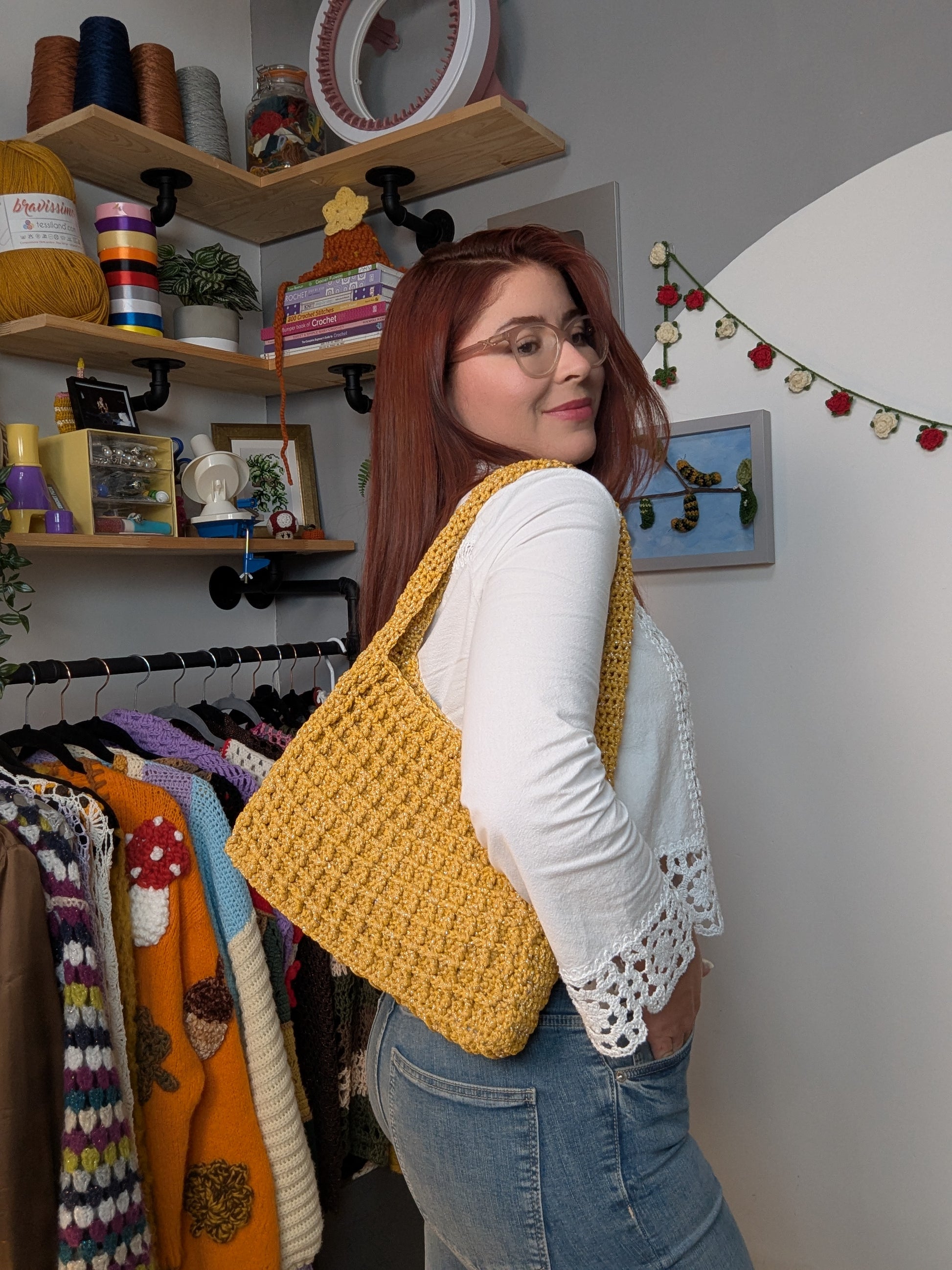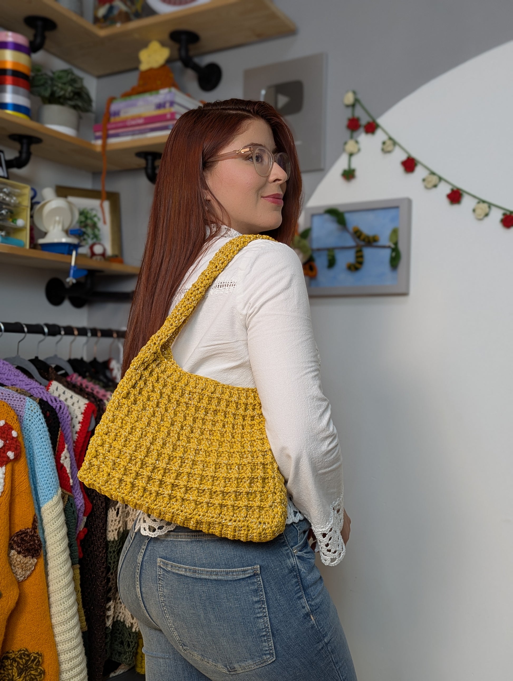 Create your own textured, modern shoulder bag using the cozy waffle stitch! This beginner-friendly crochet pattern guides you through every step, from panels to strap to finishing touches.